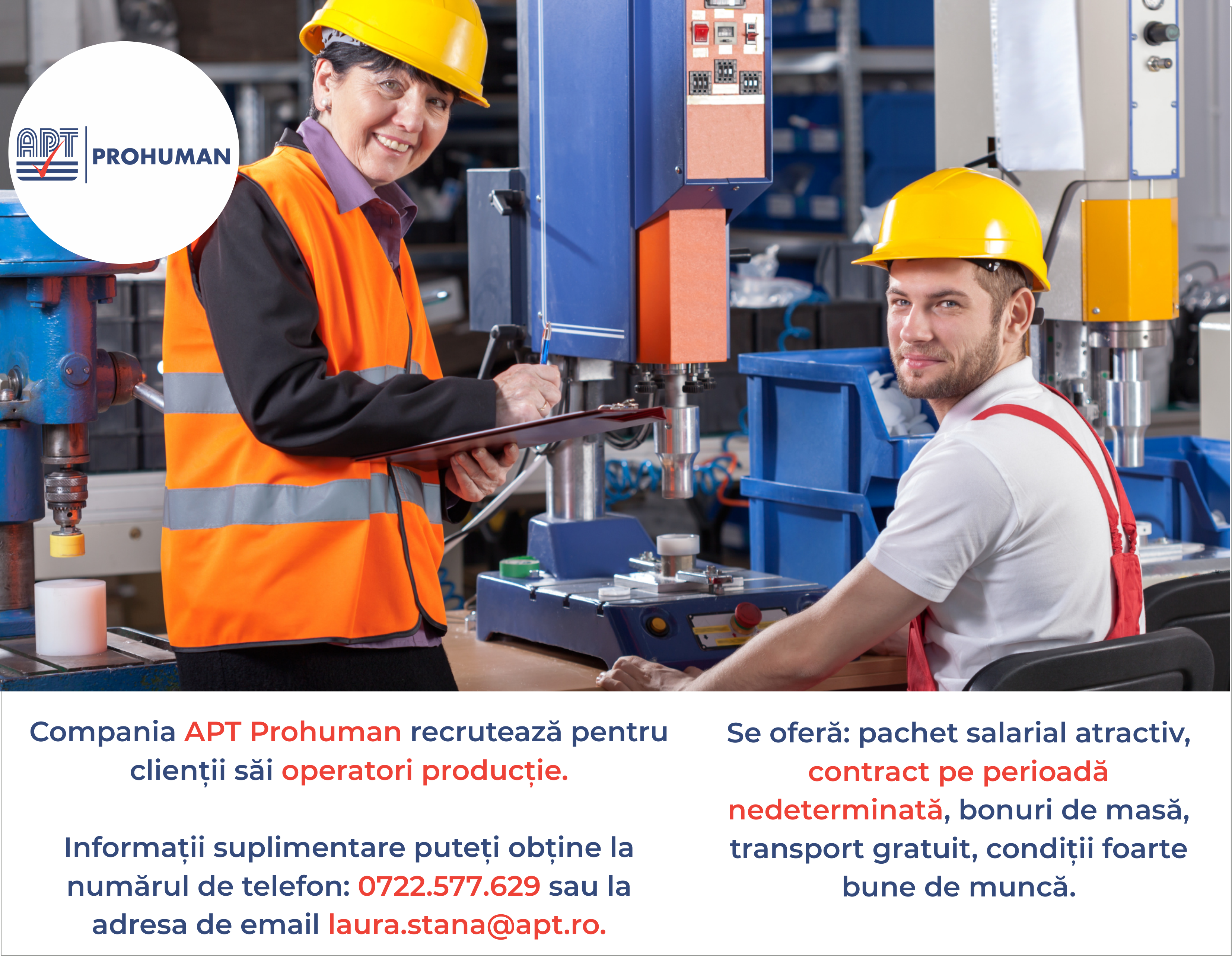 Informații suplimentare puteți obține la numarul de telefon: 0722577629 sau la adresa de email laura.stana@apt.ro