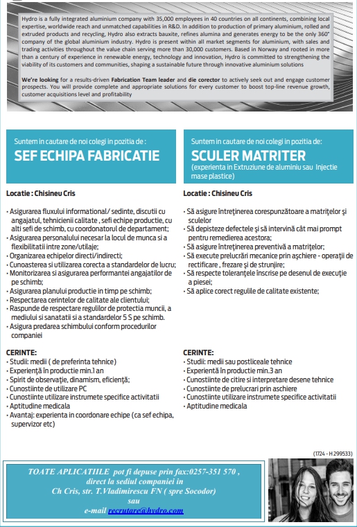 Companie austriaca in domeniul procesarii textilelor, angajeaza operatori in diverse departamente din productie. Nu se solicita experienta in domeniu.