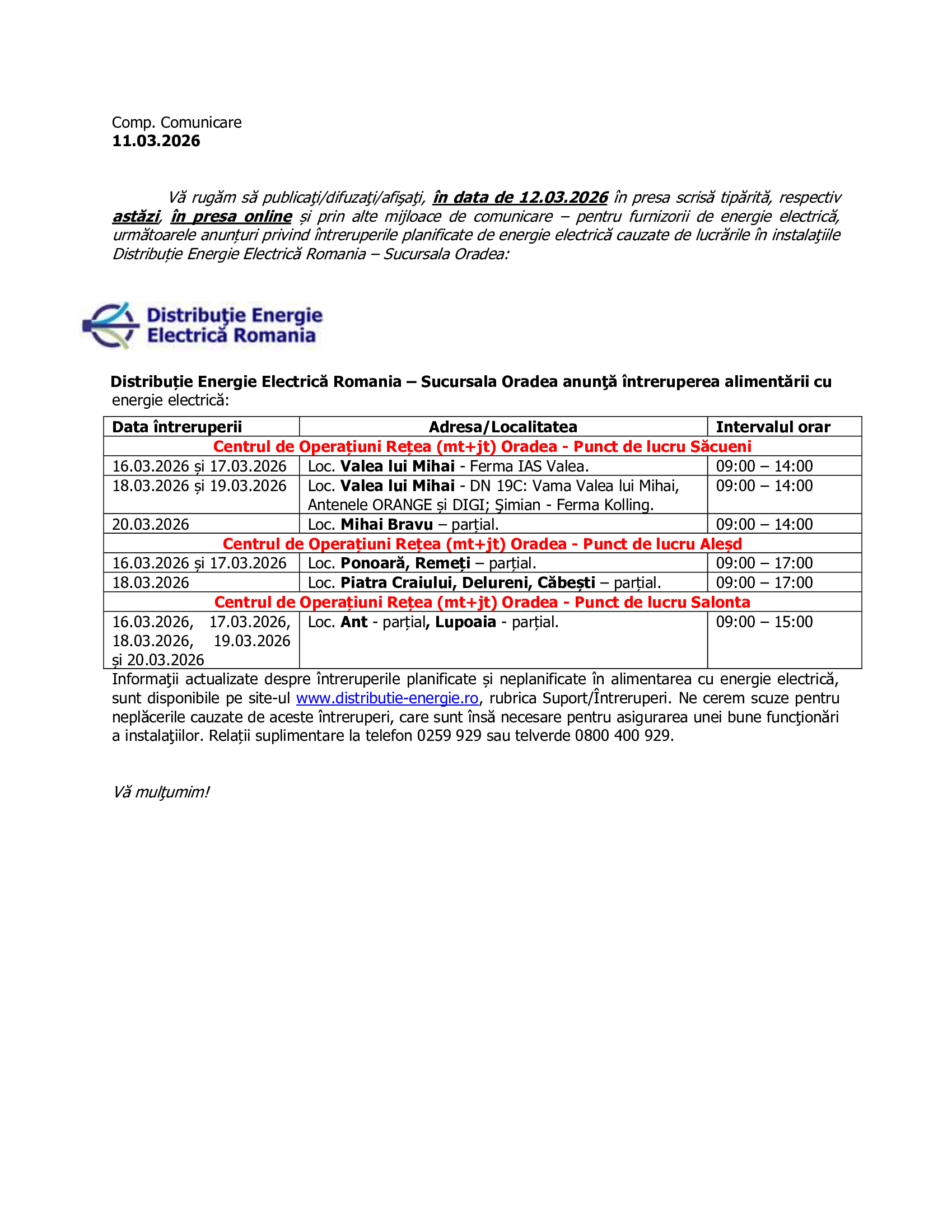 IEE 16.03.2026 - 20.03.2026 - PL Sacueni + PL Alesd + PL Salonta