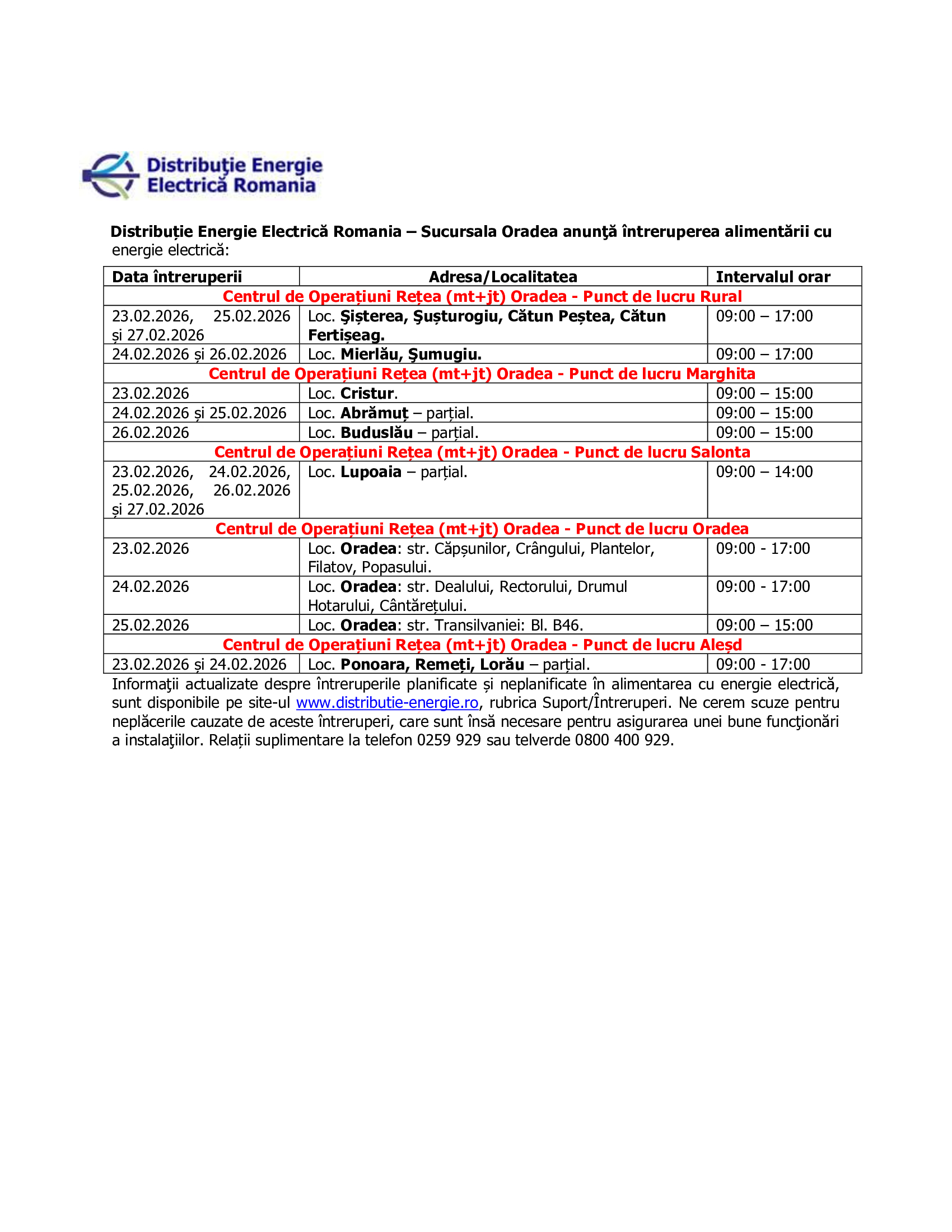 IEE 23.02.2026 - 27.02.2026 - PL Rural + PL Marghita + PL Salonta + PL Oradea + PL Alesd