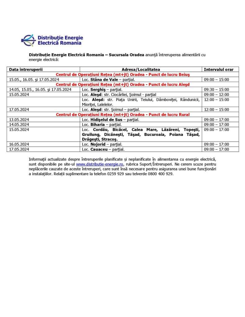 IEE perioada 13.05.2024 - 17.05.2024 - PL Beius + PL Alesd + PL Rural