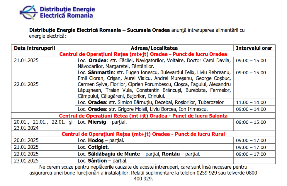 IEE perioada 20.01.2025 - 23.01.2025_PL Oradea + PL Salonta + PL Rural