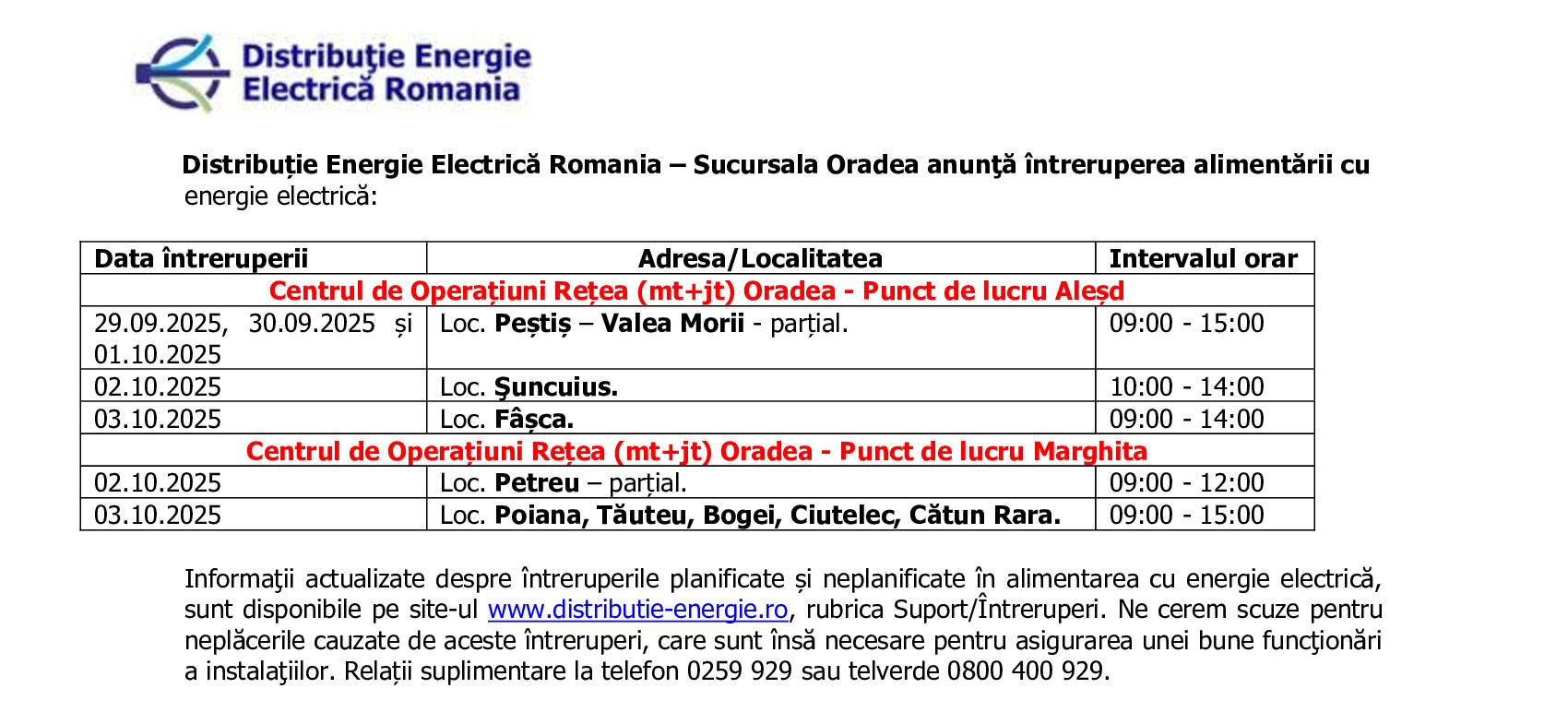 IEE perioada 29.09.2025 - 03.10.2025 - PL Alesd + PL Marghita