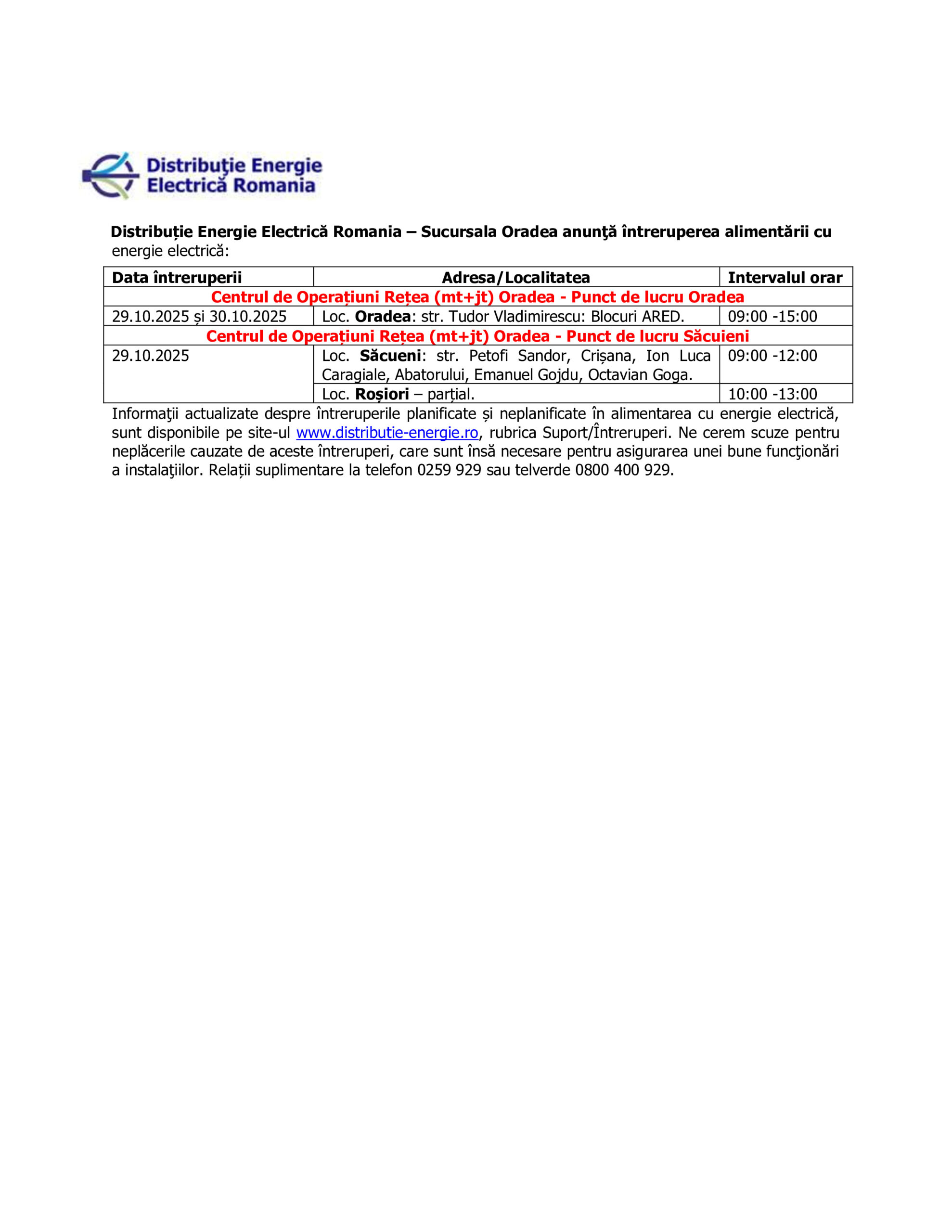 IEE perioada 29.10.2025 - 30.10.2025 - PL Oradea + PL Sacueni