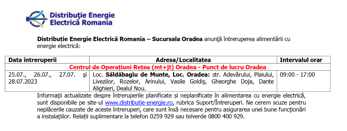 ÎNTRERUPERI ENERGIE ELECTRICĂ -Intreruperi de energie electrica_17.07.2023