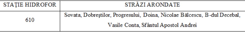 S.C. COMPANIA DE APĂ ORADEA S.A. îşi anunţă consumatorii că, în ziua de luni 08.03.2021, datorită lucrărilor de intercalare a noii reţele de alimentare cu apă nou executate pe str. Sfântul Apostol Andrei, lucrări executate de către antreprenorul SC Construcţii Copăcel SRL, furnizarea apei potabile se va întrerupe total, între orele 0900 şi 1300. Vor fi afectaţi consumatorii alimentaţi prin Staţia de Hidrofor 610: