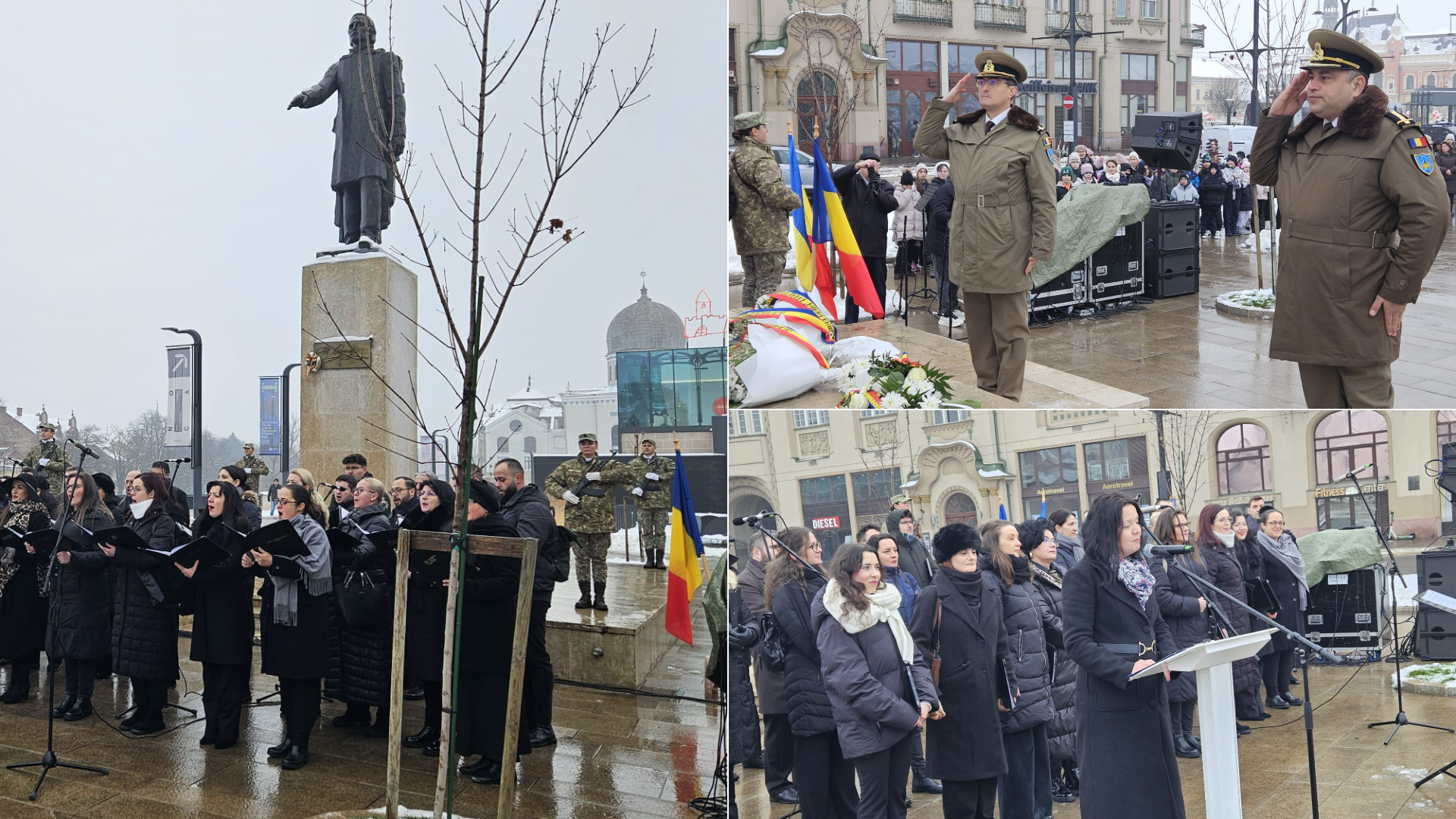 Sute de orădeni s-au adunat joi dimineața, în piațeta Unirii pentru a serba Ziua Culturii Române și a-l omagia pe Mihai Eminescu.