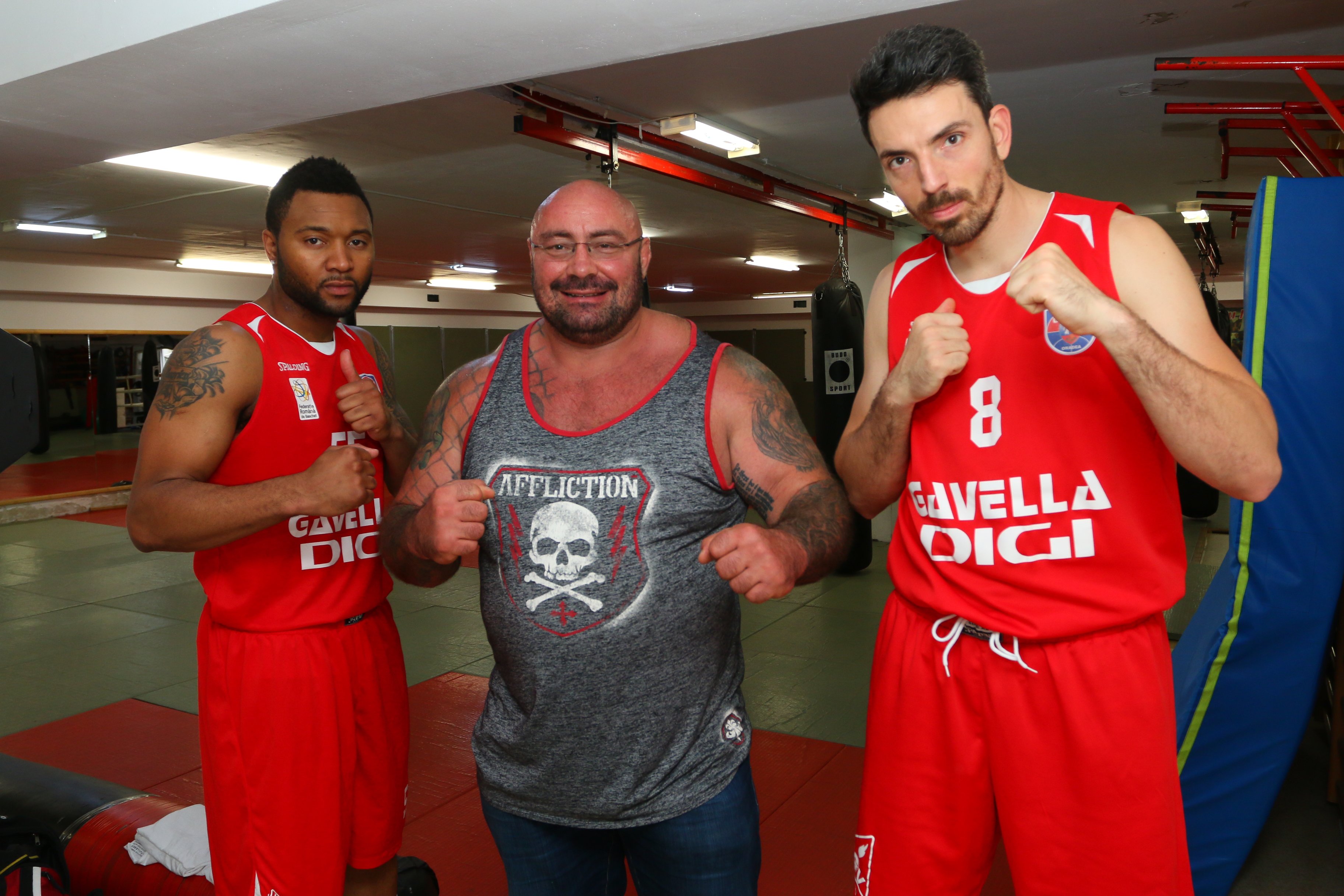 Interul stânga şi extrema CSM Oradea, alături de antrenorul Sebastian Tudor, s-au antrenat cot la cot cu elevii lui George Tăutu de la Alpha.