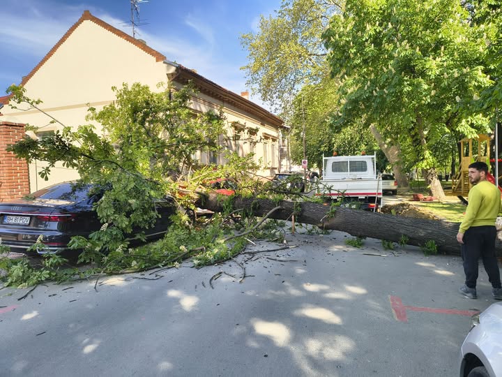 O creangă uriașă s-a prăbușit peste două mașini în Parcul Libertății din Oradea, fără victime, la scurt timp după modernizarea zonei.