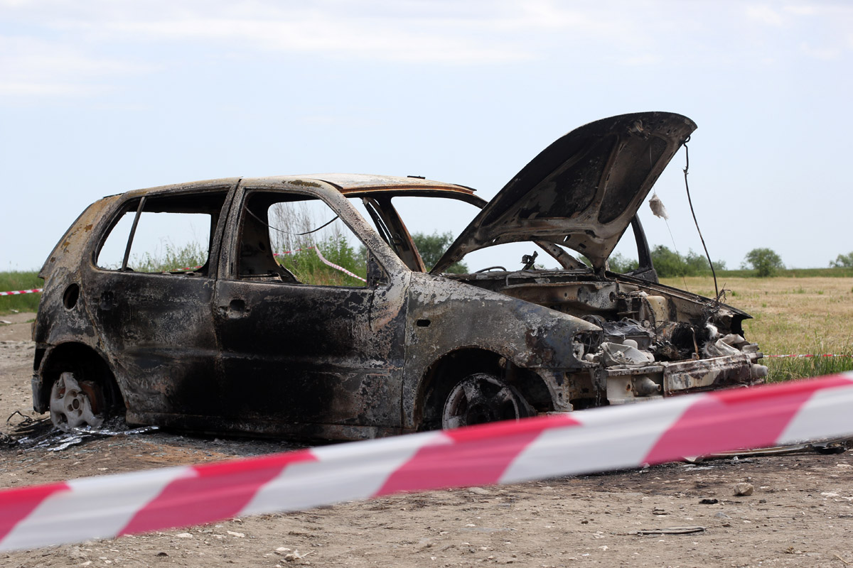 Cadavrul ars al unei persoane a fost descoperit, marți după-amiaza, pe un câmp de lângă Oradea, spre Sântandrei, într-o mașină carbonizată.
