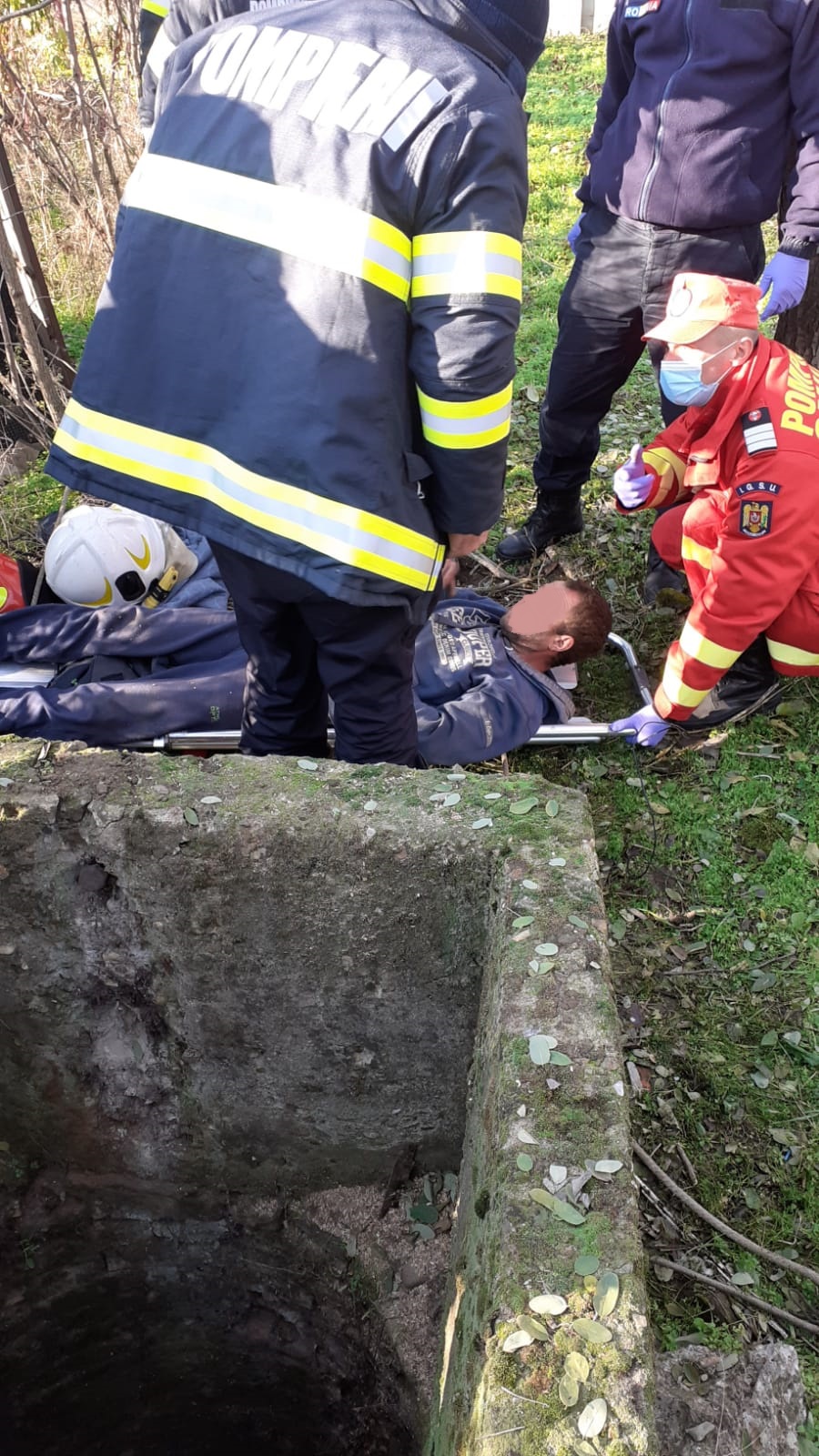 Pompierii militari au intervenit sâmbătă dimineața pentru salvarea unui bărbat căzut în fântâna din curtea unei gospodării din Tinca.