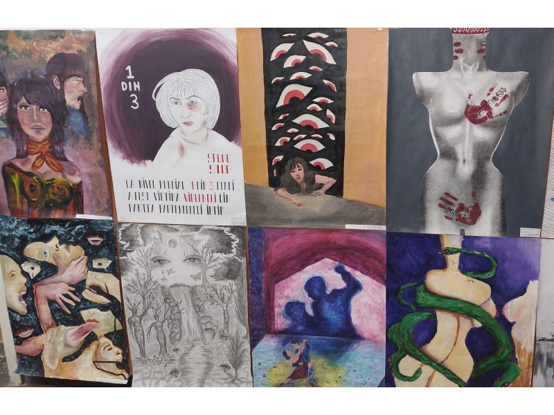 Lucrările realizate în cadrul concursului Județean „Pictați cu noi”, cuprinse într-o expoziție.