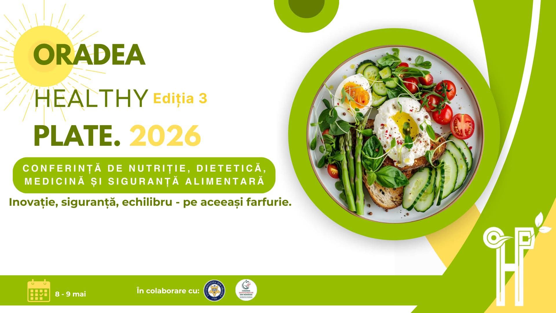 Oradea devine, în perioada 8–9 mai 2026, un punct de referință pentru profesioniștii din domeniul sănătății, odată cu organizarea celei de-a treia ediții a Oradea Healthy Plate, un eveniment care îmbină într-un mod autentic nutriția, dietetica, medicina și siguranța alimentară.