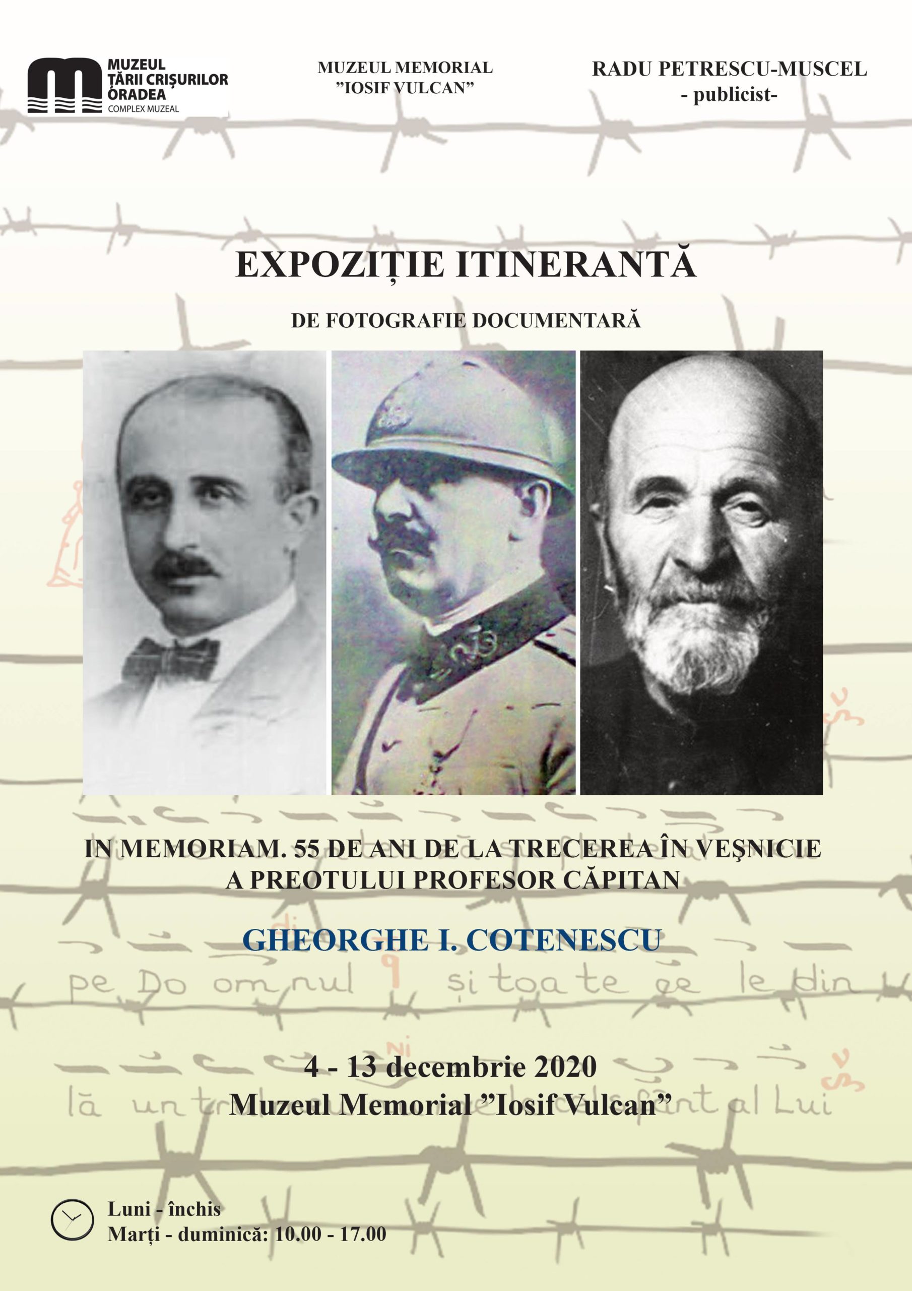 Începând din 4 decembrie 2020, Muzeul Memorial „Iosif Vulcan”, din cadrul Muzeului Țării Crișurilor – Complex Muzeal, va găzdui expoziția fotodocumentară intitulată „In memoriam. 55 de ani de la trecerea în veșnicie a preotului profesor căpitan Gheorghe I. Cotenescu”, rod al inițiativei ziaristului pensionar Radu Petrescu-Muscel, nepotul direct al preotului militar Cotenescu (1886–1965).
