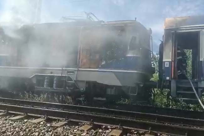 Miercuri dimineața, locomotiva trenului Halmeu - Valea lui Mihai a fost cuprinsă de flăcări, în stația din localitatea Domănești, Satu Mare.