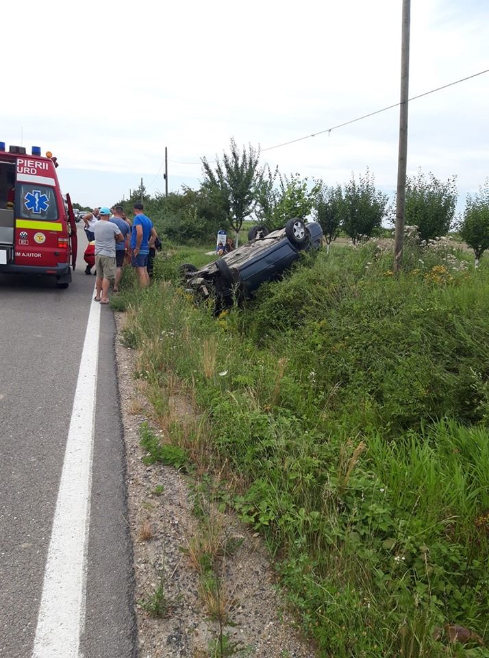 Ninsoarea din ultimele zile începe să își facă simțite efectele. Un autoturism a ajuns cu roțile în sus, sâmbătă dimineața, după ce a derapat.