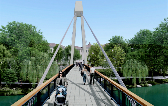 Se lucrează la o pasarelă pietonală, peste Peţa, lângă Universitate şi o alta va fi demarată în curând.
