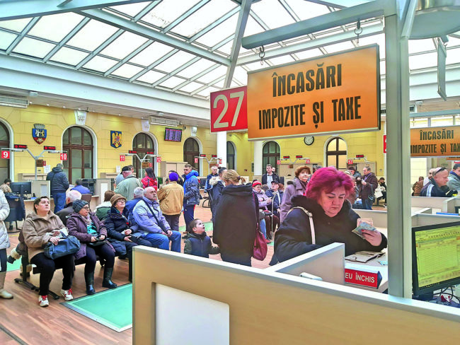 Contribuabilii dornici să-şi stingă datoriile la început de an trebuie să îşi ia număr de ordine înainte de a se aşeza la coadă.