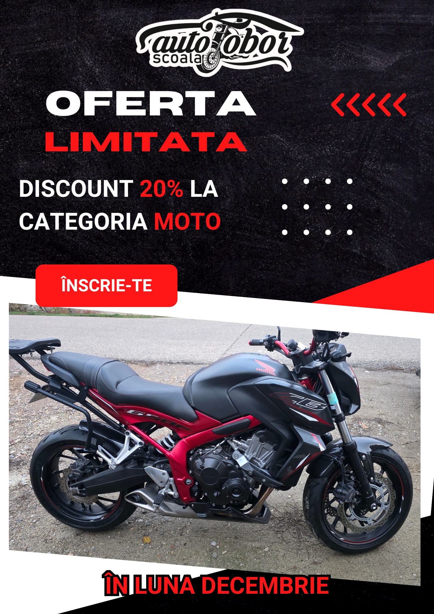 Oferim 20% reducere la toate categoriile de permis pentru motociclete celor care se înscriu în luna decembrie!