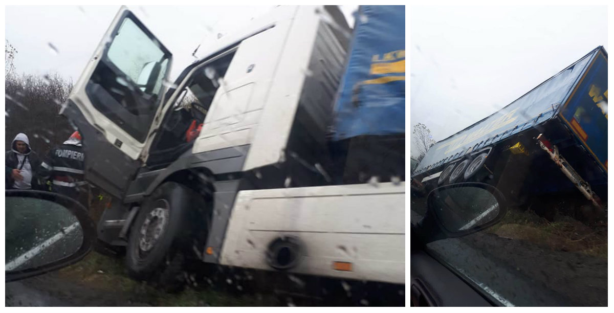 Un TIR s-a răsturnat la Ianca duminică dimineața. Se pare că șoferul a nu a adaptat viteza la condițiile de drum, a pierdut controlul asupra direcției și s-a răsturnat pe marginea carosabilului.