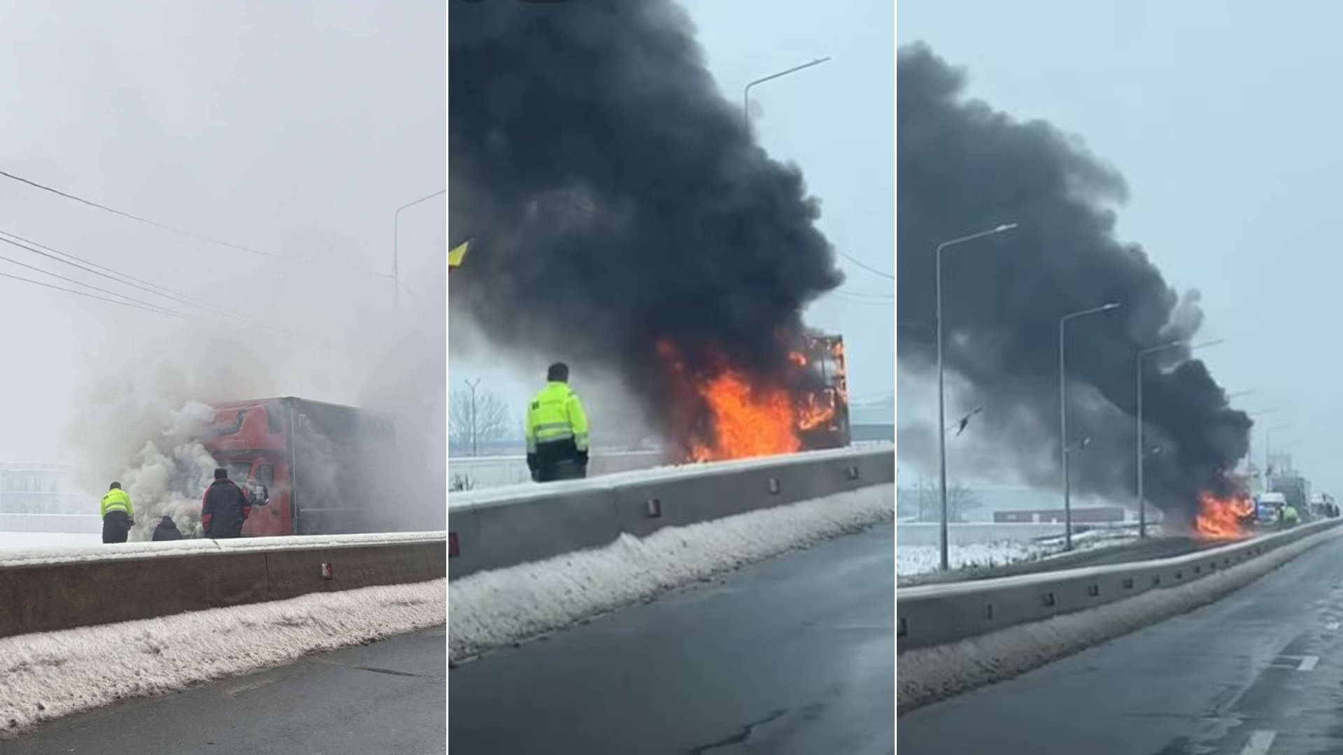 Un incident grav a avut loc în cursul zilei de astăzi unde o autoutilitară a fost cuprinsă de flăcări în mers.