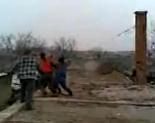 Un grup de constructori s-au adunat pentru a darama un cos de fum de pe o casa. Dupa ce studiaza ei problema, leaga cosul cu o franghie si incep sa traga cu putere. In cele din urma efortul lor da roade, doar ca, hornul cade exact langa ei si rupe planseul pe care stateau. Astfel, trei dintre ei cad printre daramaturi, iar din ce se vede pe filmare nu aratau prea bine. Filmarea a fost postata pe youtube