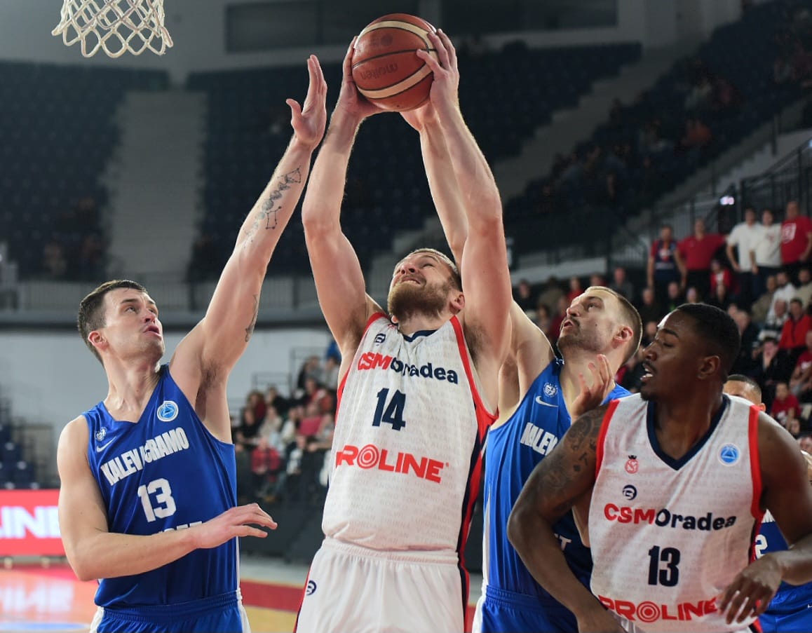 Roș-albaștrii au alergat după egalare pe tot parcursul întâlnirii, din păcate fără succes. BC Kalev Cramo și-a adjudecat primele două sferturi, tabela indicând la pauza mare scorul de 35-46. Orădenii au crescut intensitatea apărării în cea de-a treia secvență a partidei și au recuperat punct după punct, apropiindu-se la o singură posesie, scor 55-57 (min 28), prin coșul lui Kris Richard. Oaspeții s-au distanțat însă imediat, pe fondul erorilor defensive din jocul gazdelor.