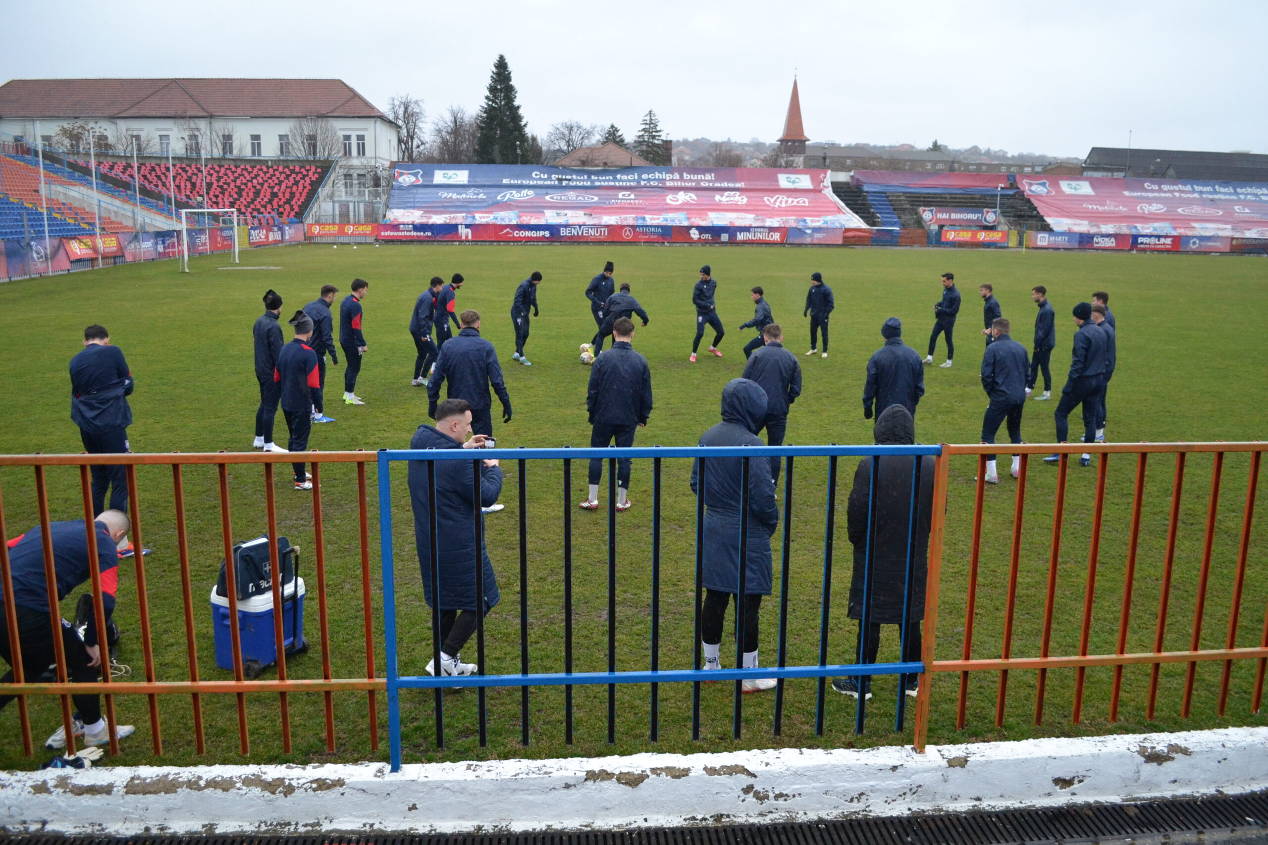 Antrenamentul a început pe ploaie și a continuat pe ninsoare, vremea de vineri fiid foarte capricioasă.