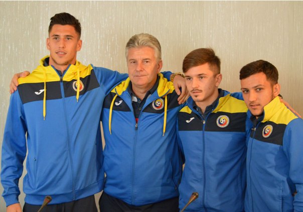 Ionuț Pop, selecționerul Andrei Spier, Dan Panait și Robert Vîlceanu la conferința premergătoare turneului de la Oradea FOTO: FRF.RO