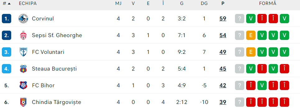 Corvinul a avut două sincope în play-off, pierzând primele jocuri în acest campionat cu același scor, 0-1, cu Sepsi și FC Voluntari, dar și așa are 10 puncte avans față de locul 3.