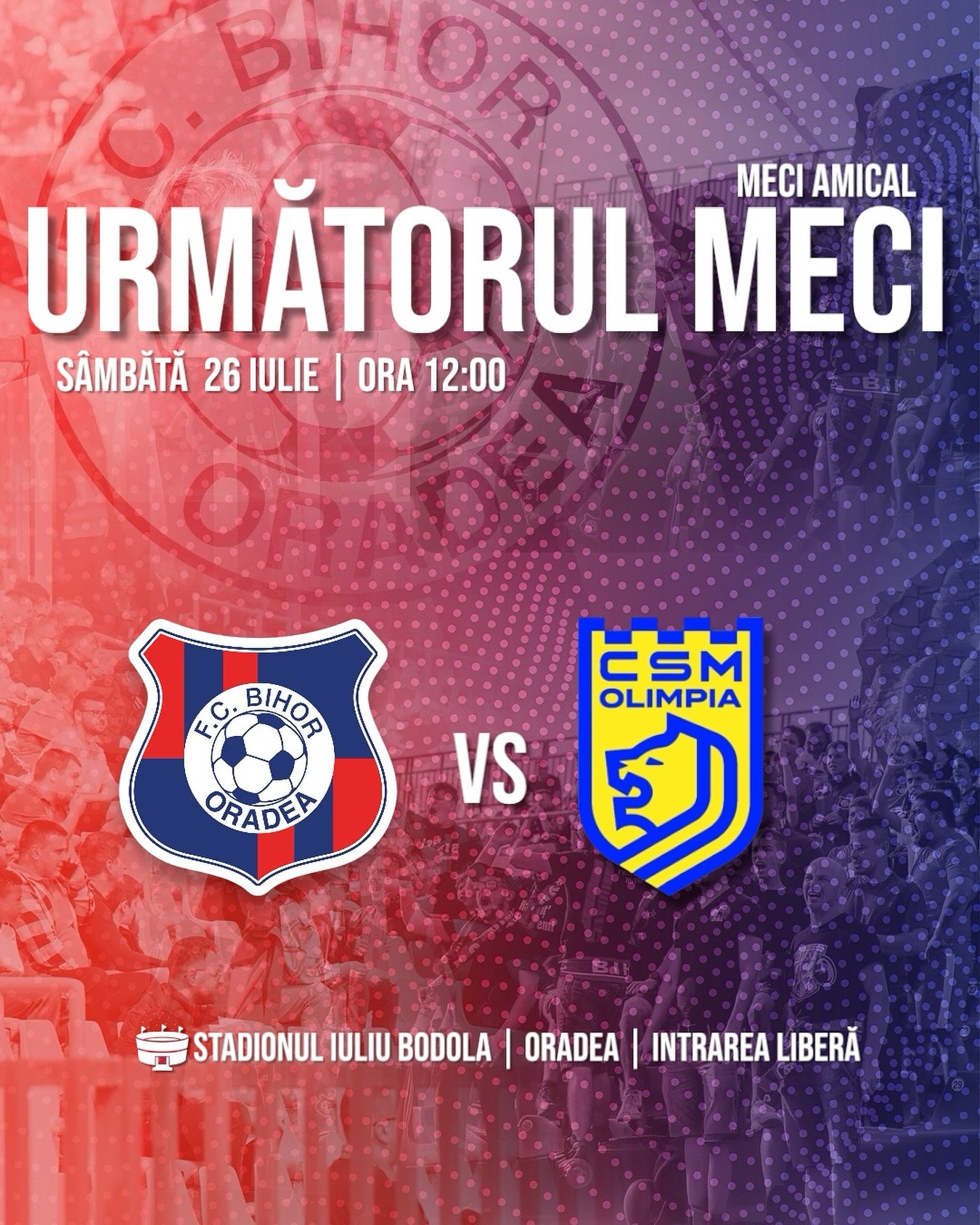 FC Bihor și Olimpia Satu Mare se vor întâlni foarte curând și în meci oficial, în etapa a doua din Liga 2, pe Stadionul Daniel Prodan din Satu Mare.