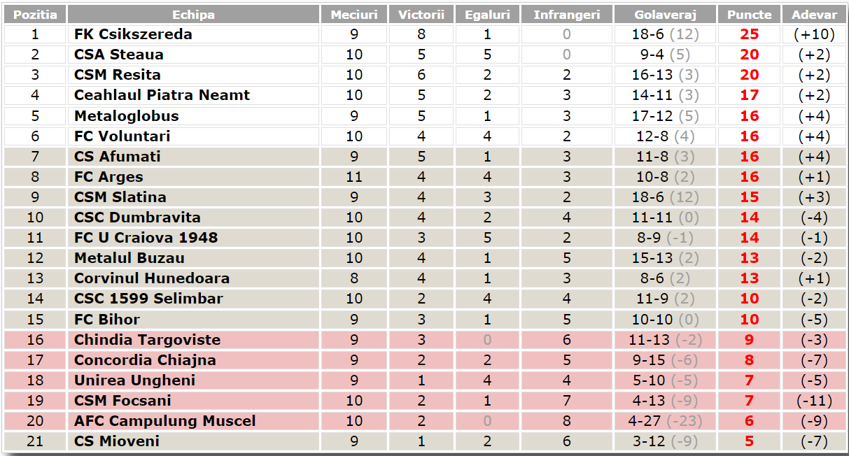După scăderea rezultatelor cu falimentarul club Viitorul Pandurii Târgu Jiu, CSM Slatina a pierdut 3 puncte și a coborât pe locul 8, în timp ce FC Bihor a urcat pe 14, pierzând doar un punct.