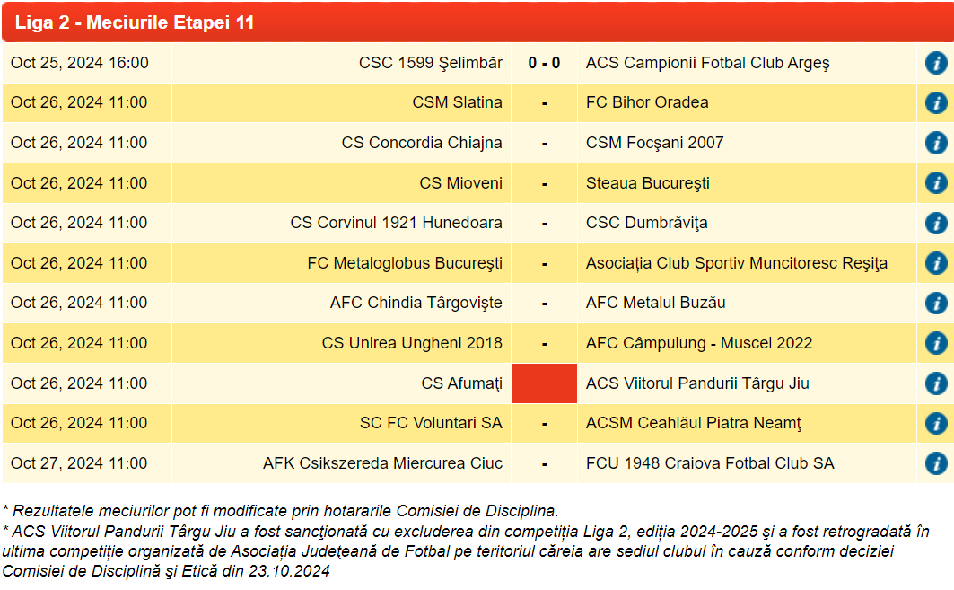 Etapa a început vineri cu meciul CSC Șelimbăr – FC Argeș, scor 0-0, și continuă sâmbătă, când sunt programate cele mai multe meciuri: