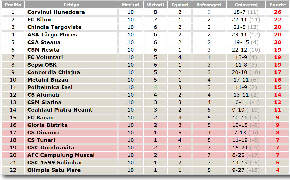 CS Gloria Bistrița – Chindia Târgoviște 3-1 (2-1). Rafael Tavares 32, P. Chiorean 40, Effiom 82 / G. Honciu 25