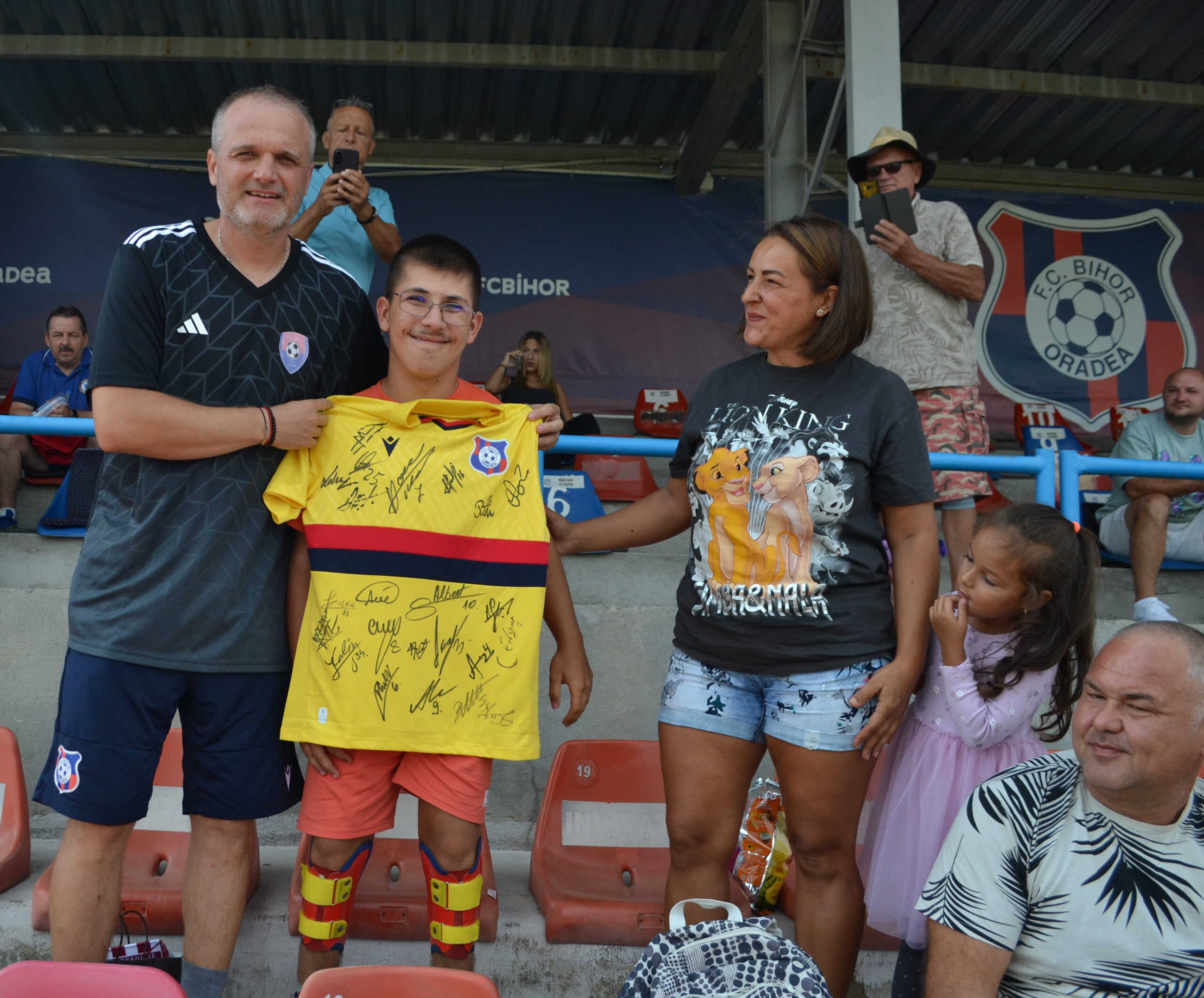Patrik a primit un tricou de la Erik Lincar cu autografele jucătorilor de la FC Bihor FOTO: TEODOR BIRIȘ