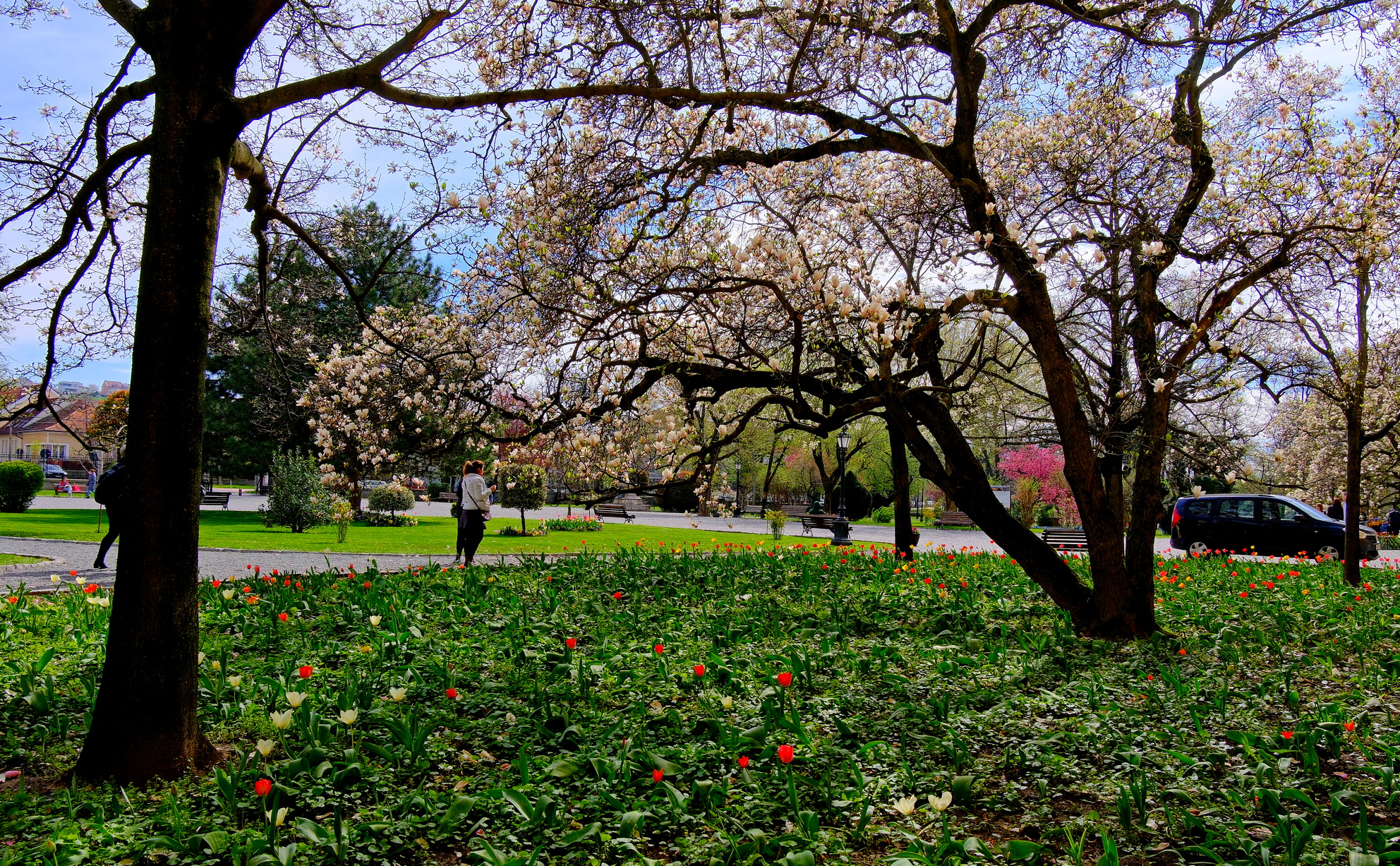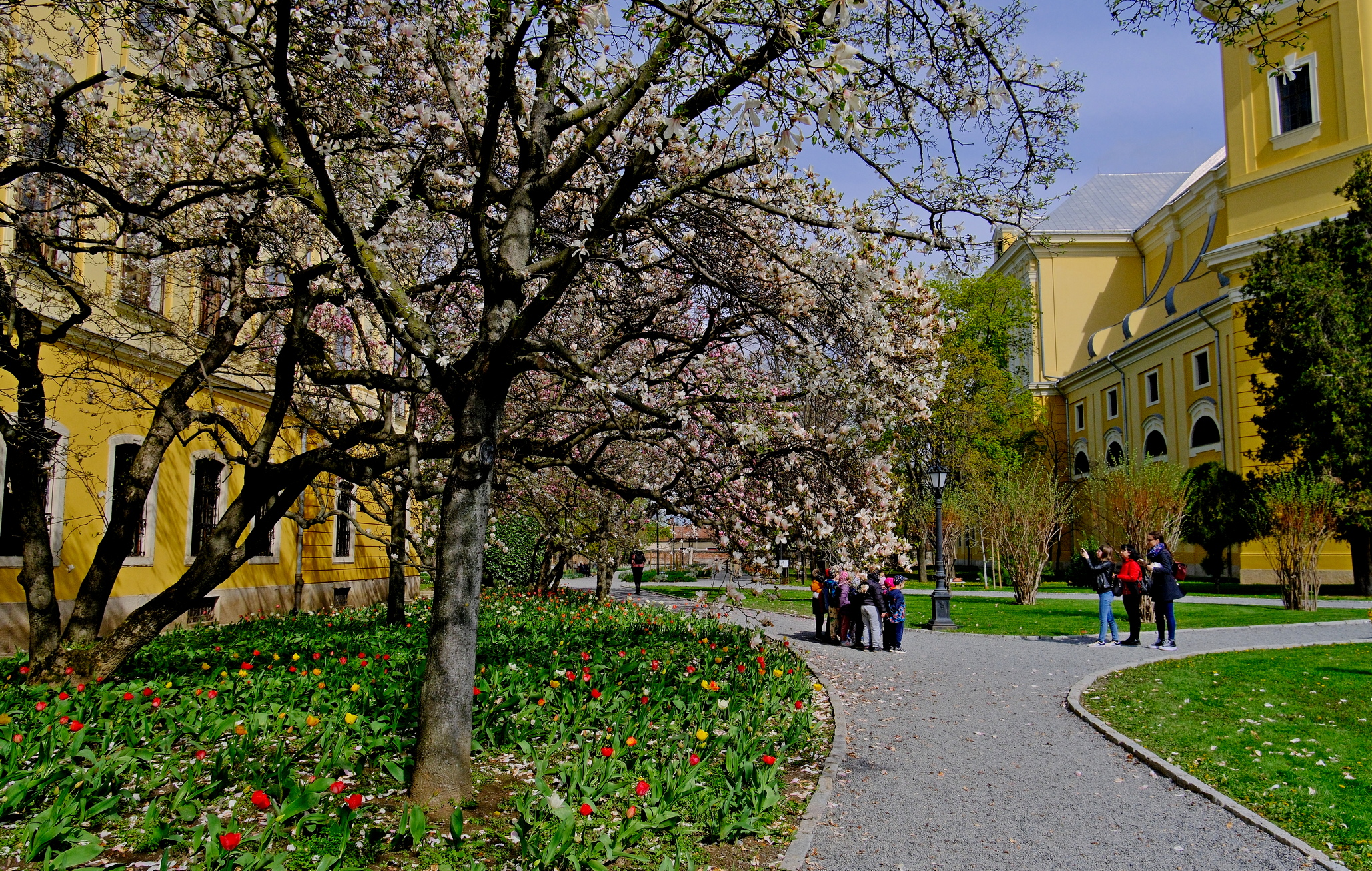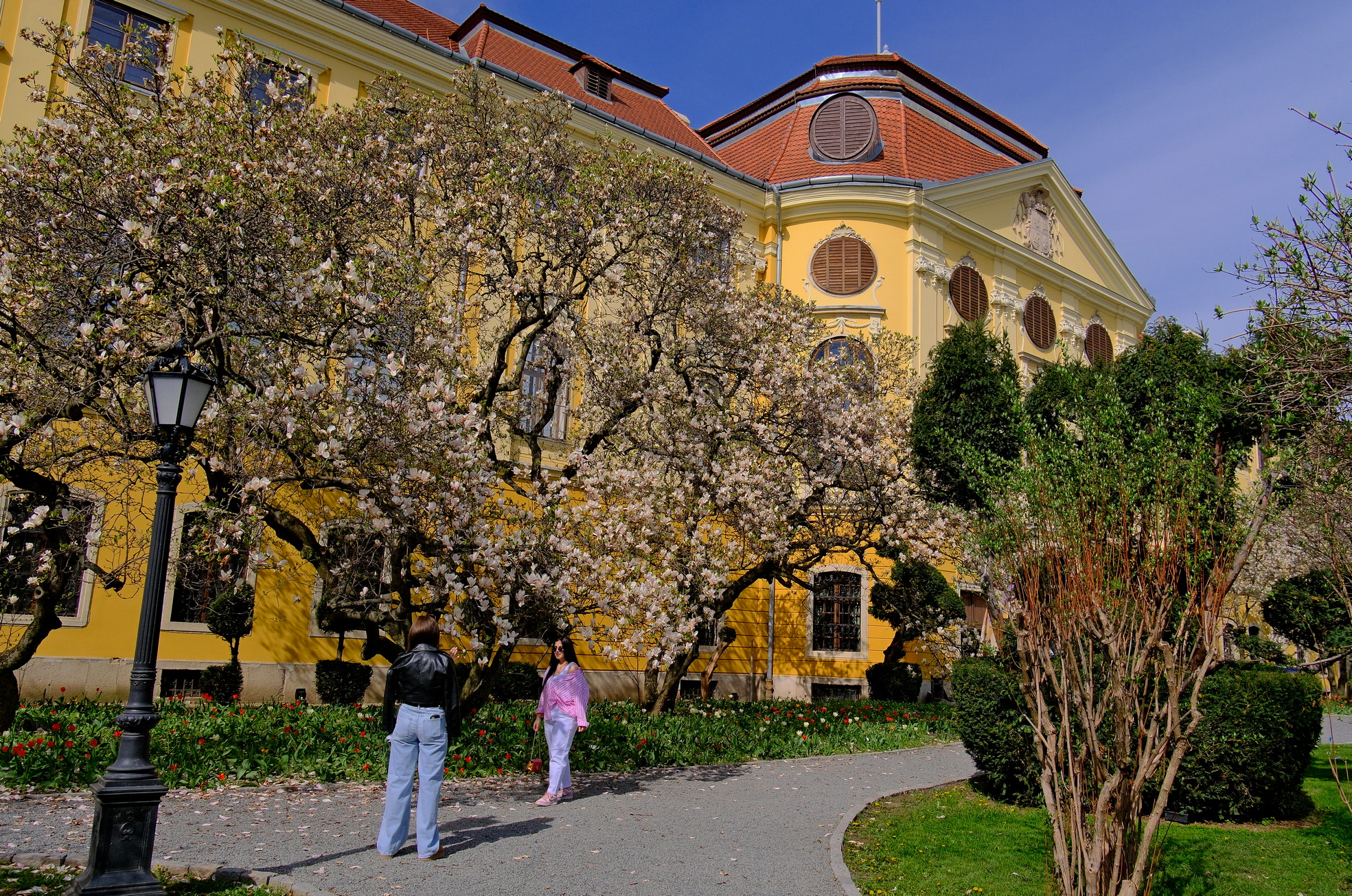 foto: Magnolii înflorite în curtea Palatului Baroc, 02.04.2025