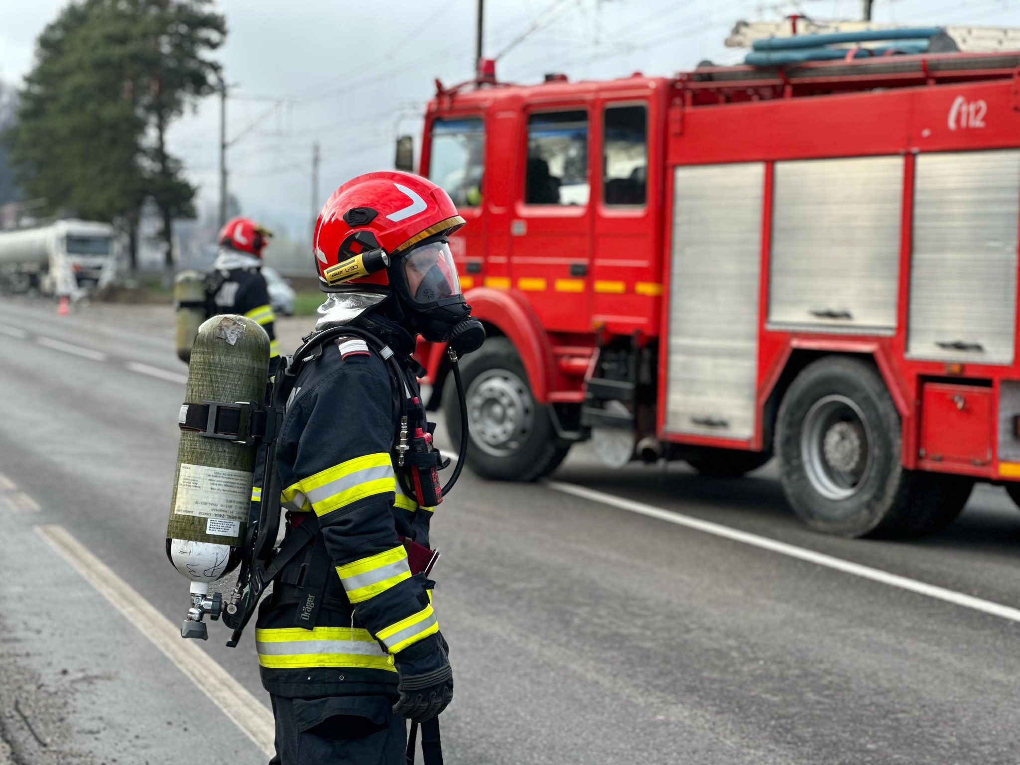 foto: Trafic deviat pe DN1, din cauza unor scurgeri de acid sulfuric dintr-o cisternă, 31.03.2025