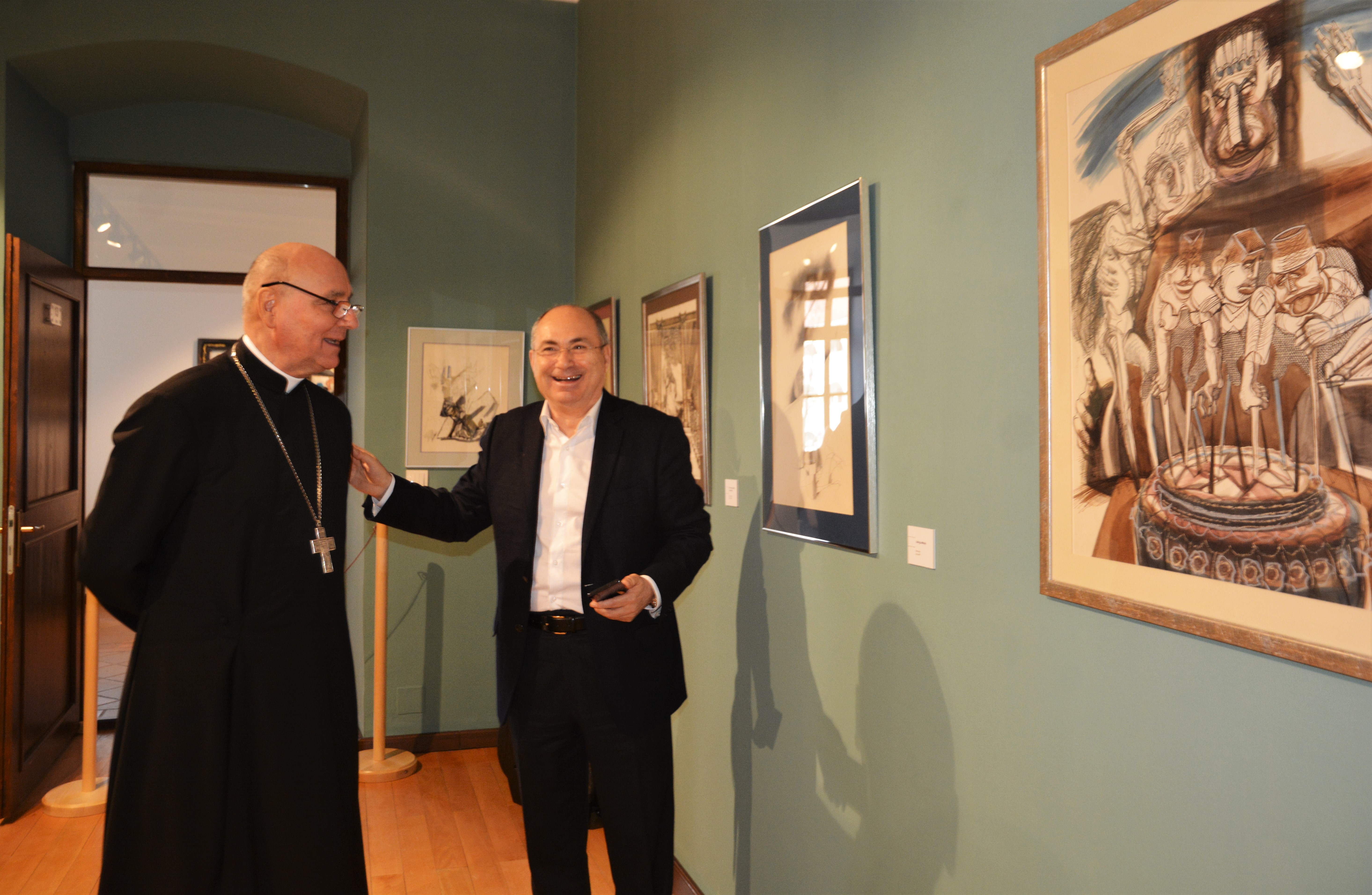 Virgil Bercea si colecţionarul George Şerban la expoziţie "50 de ani de grafică românească