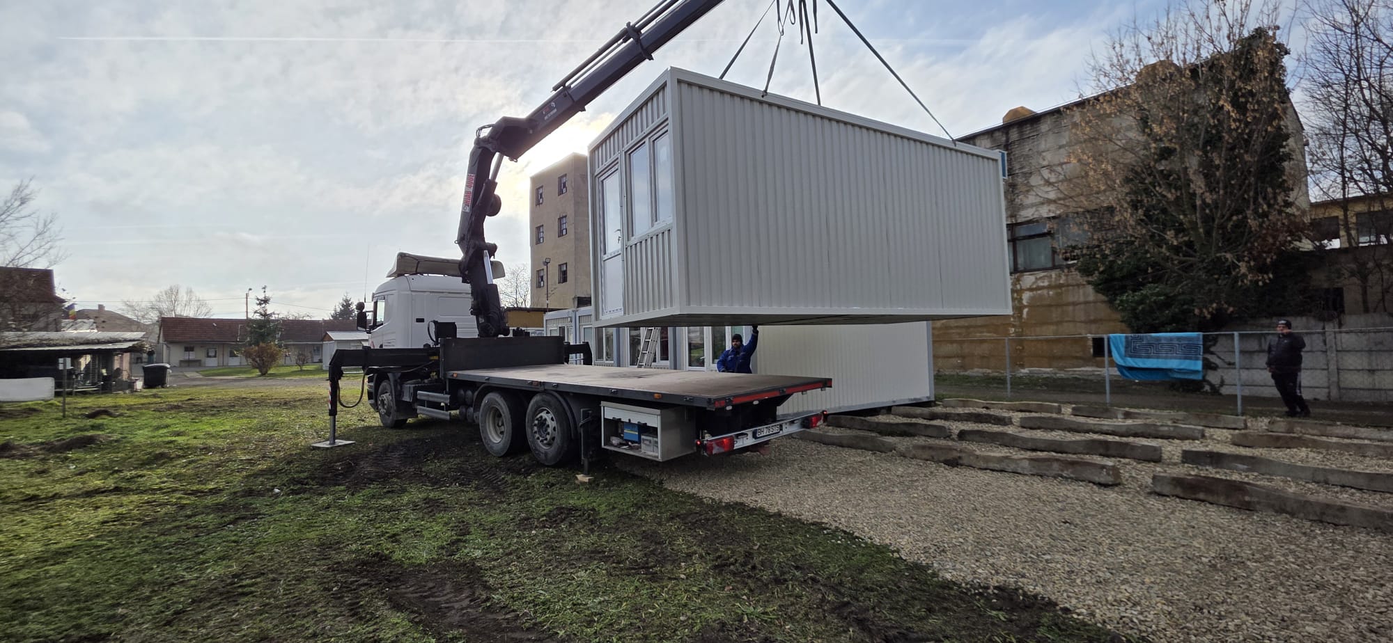 foto: Trei noi containere pentru nevoiași instalate în curtea Adăpostului de Noapte, 18.12.2025