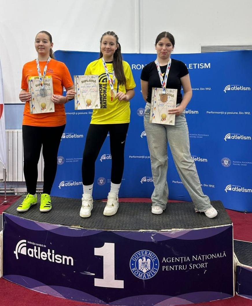 La aruncarea greutății de 2 kg, Alexia Smina Meheș (Crișul Oradea (antrenori Méhes Albert şi Livia) a devenit campioană națională cu o aruncare de 11,93 m, record personal, fiind urmată pe podium de Karina Maria Matei (CSȘ Tecuci) – 10,71 m și Daria Analisa Isac (Unirea Focșani) – 10,43 m. De remarcat că atleta orădeancă a a avut toate cele 5 aruncări la distanțe reușite între 10,74 m și 11,93 m.