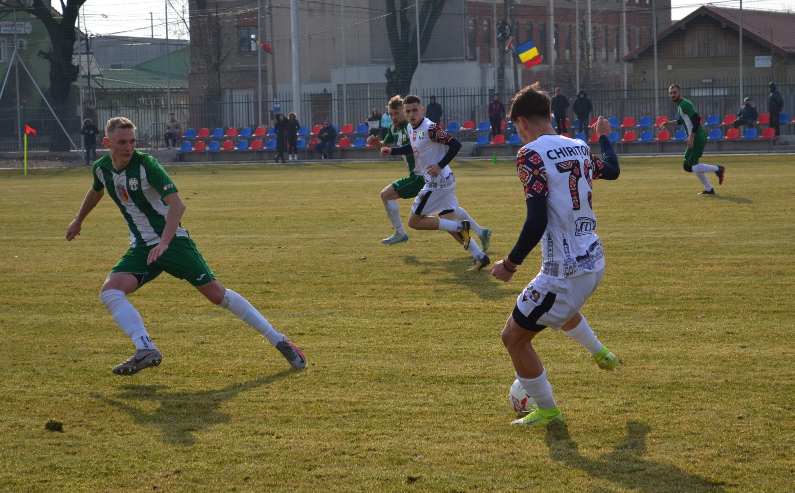 David Mailinger față în față cu Luca Bărbulescu, jucător testat de FC Bihor, ajuns între timp la Dinamo în prima ligă FOTO: TEODOR BIRIȘ