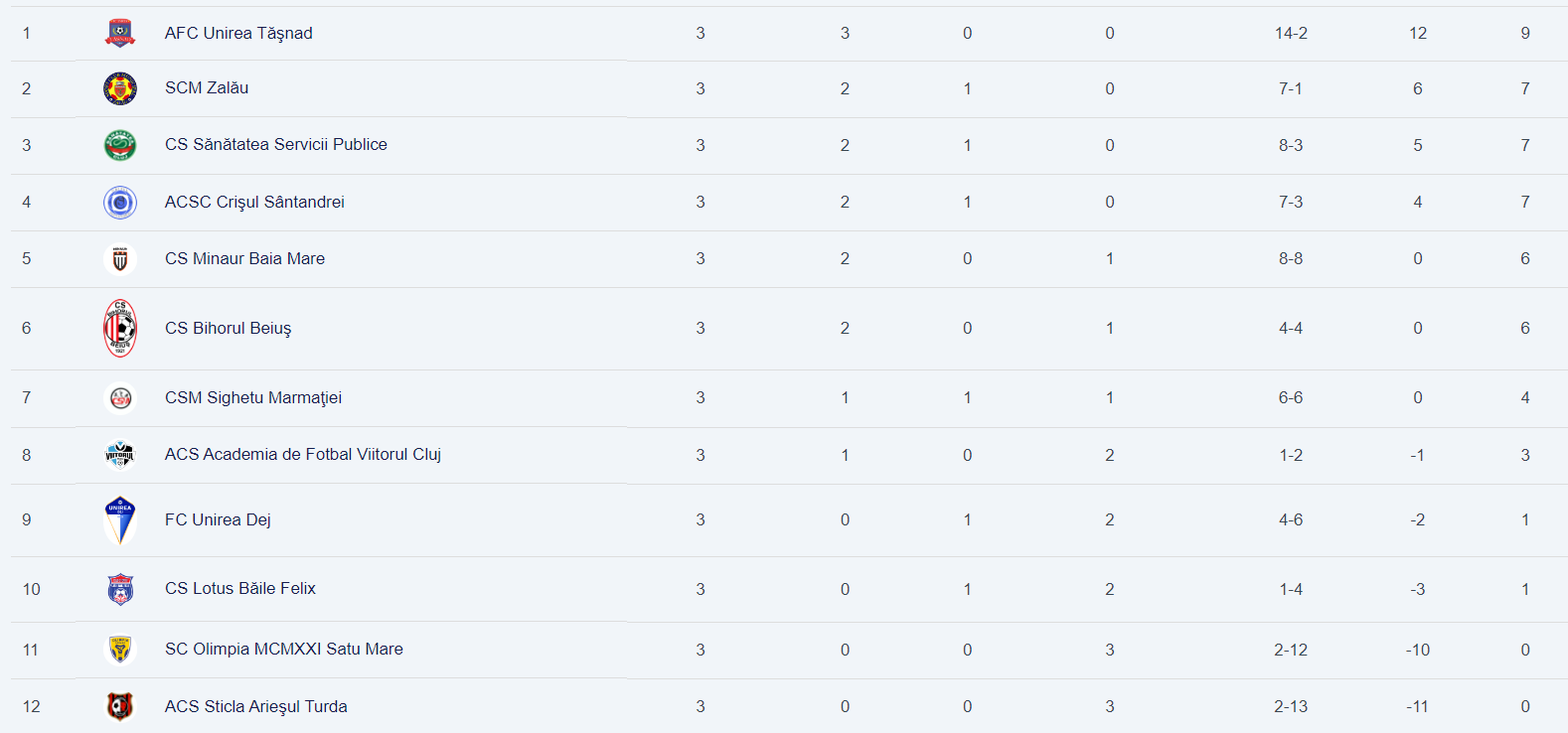 Crișul Sântandrei a învins cu 2-0 (1-0) pe Olimpia MCMXXI Satu Mare, formație rămasă fără punct în acest debut de campionat în Liga 3, Seria 8. Juniorul Casian Cirtea (17 ani) a deschis scorul în minutul 2, iar Denis Rusu (24 ani) a stabilit scorul final în minutul 74.