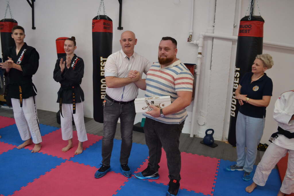 Romeo Tulkos, președintele clubului, i-a oferit un cadou lui Florin Ionuț Lupaș, care în ziua inaugurării și-a serbat ziua de naștere. Multiplu campion, medaliat la competiții naționale și internaționale, Lupaș va coordona a patra secție a CS King Do Lions, cea de powerlifting.