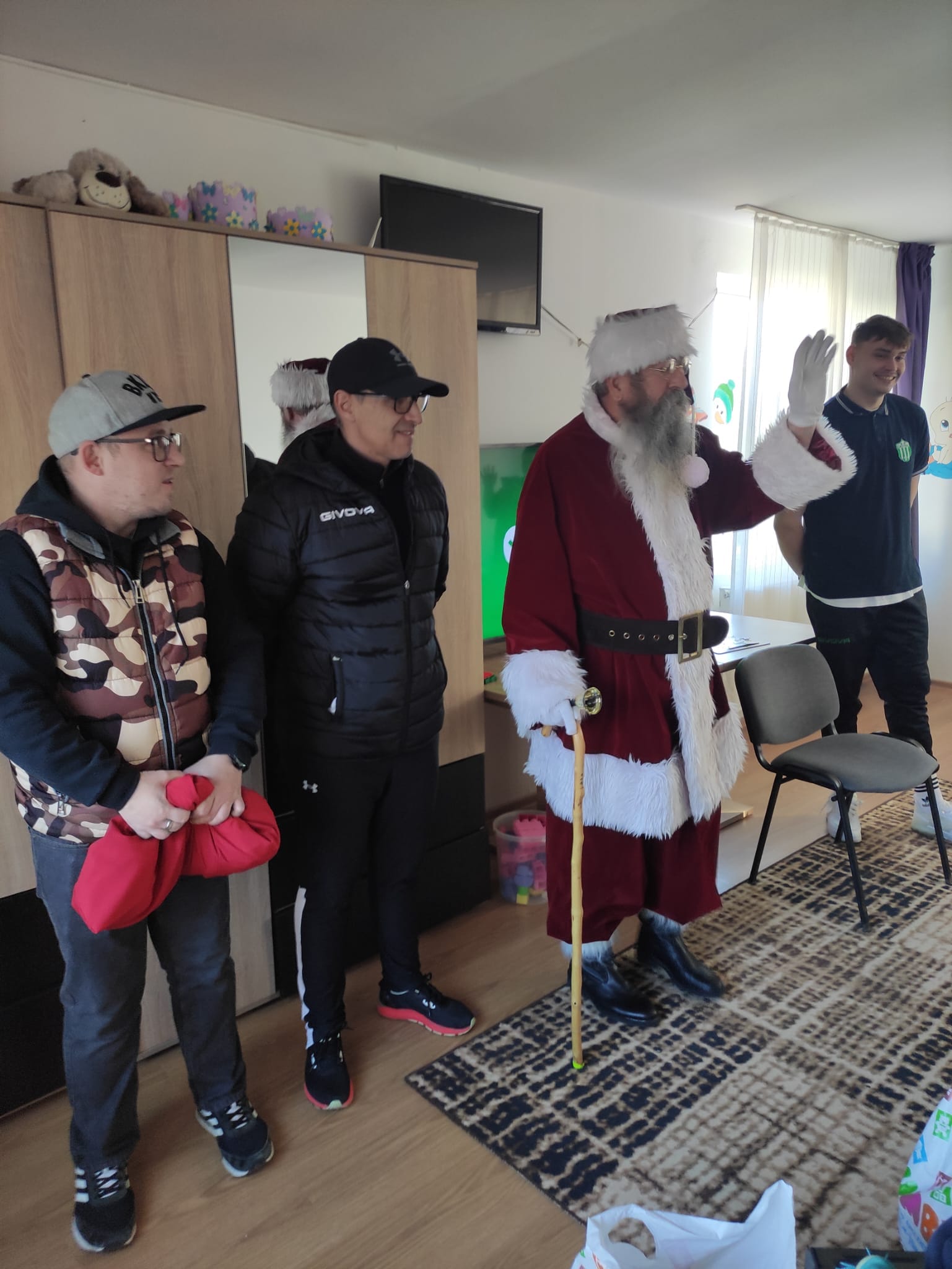 O delegație a „alb-verzilor”, din care a făcut parte antrenorul Imi Lukacs și portarul David Negrea, l-au ajutat pe Moș Crăciun să împartă cadouri.