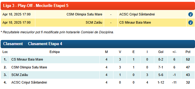 În play-off-ul din Seria 10, Crișul Sântandrei are o misiune dificilă la CSM Olimpia Satu Mare, grupare aflată în cursa pentru un loc la barajul de promovare.