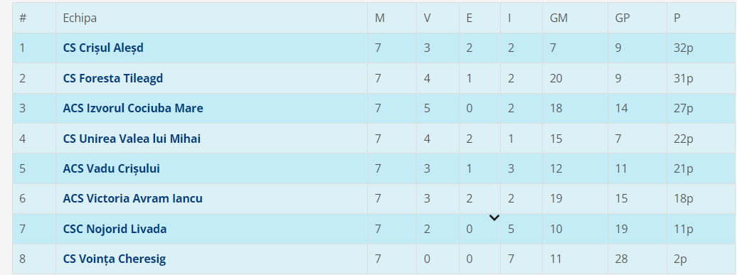 Etapa viitoare (18-19 aprilie): sâmbătă, CSC Nojorid Livada – Foresta Tileagd (ora 17:00), Unirea Valea lui Mihai – ACS Vadu Crișului (ora 17:00); duminică, Voința Cheresig – Crișul Aleșd (ora 17:00), Victoria Avram Iancu – Izvorul Cociuba Mare (ora 17:00)