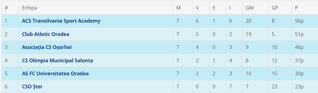 Club Atletic Oradea – ACS Transilvania Sport Academy 0-1 (0-1). Marius Balogh 6 penalty