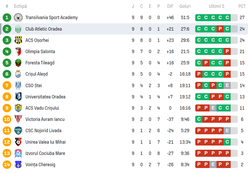 Etapa viitoare (1-2 noiembrie): sâmbătă, ACS Transilvania Sport Academy – Crișul Aleșd, FC Universitatea Oradea – CS Oșorhei, CSM Olimpia Salonta – Foresta Tileagd (toate de la ora 11:00), ACS Vadu Crișului – Club Atletic Oradea (ora 14:00), Unirea Valea lui Mihai – CSC Nojorid Livada (ora 14:00); duminică, CSO Ștei – Victoria Avram Iancu, Izvorul Cociuba Mare – Voința Cheresig 9ambele de la ora 14:00).