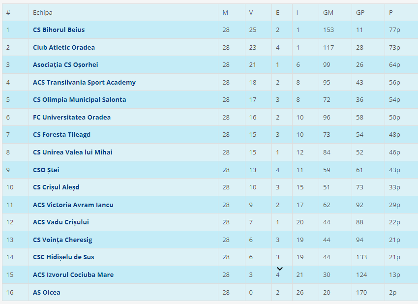 AS Olcea – Crișul Aleșd 2-3 (2-2). Răzvan Stanca 29, Paul Baches 43 / Claudiu Pelmuș 3, 12, Marius Gubics 54