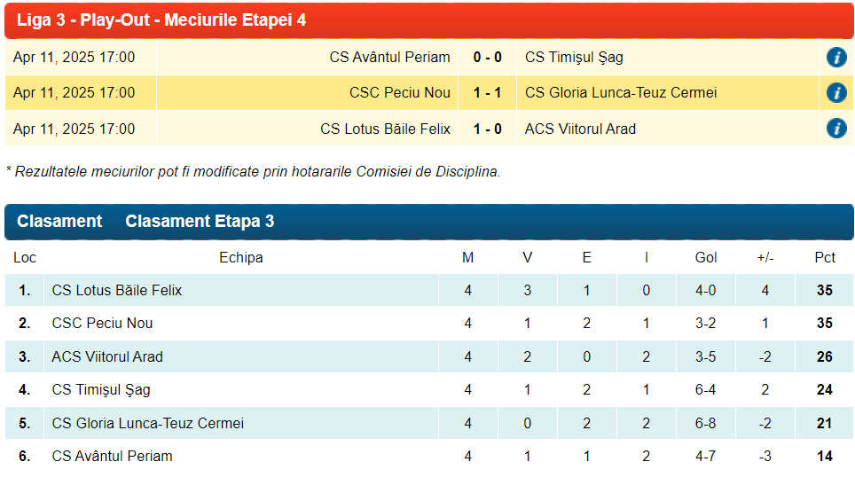 Pentru Lotus Băile Felix urmează două etape în deplasare, vineri, 18 aprilie, la Gloria Lunca Teuz Cermei, și 26 aprilie la Timișul Șag, iar următorul joc acasă va fi în 2 mai cu CSC Peciu Nou.